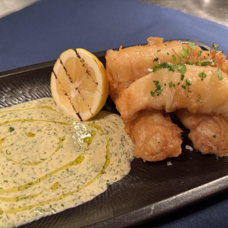 Battered and fried Fish | House-made Tartar Sauce | Lemon | ...add a glass of wine for $5