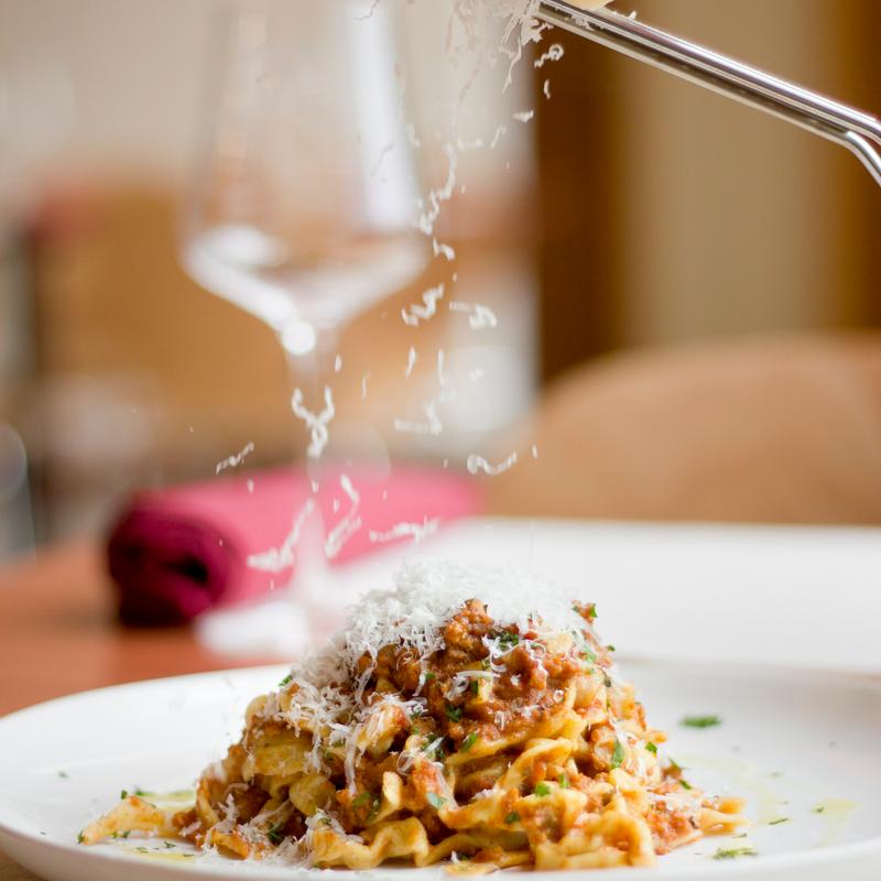 House-made Pork Veal and Beef Sauce | Olive oil | Basil | Parmigiano Reggiano