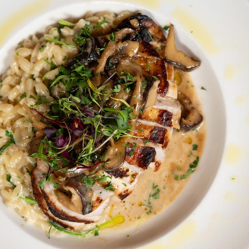 Pan-seared Chicken | Creamy Mushroom Marsala Sauce | Creamed Arugula Orzo